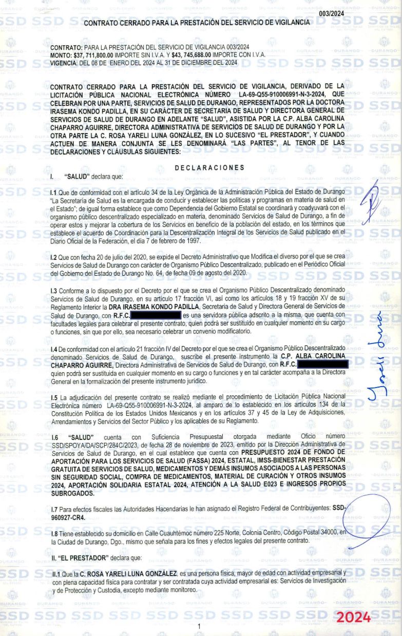 La empresaria se llama Rosa Yareli Luna González y entre los años 2023 y 2024 ha recibido contratos en la secretaría de Salud “para la prestación del servicio de vigilancia” que ascienden a casi 90 millones de pesos.