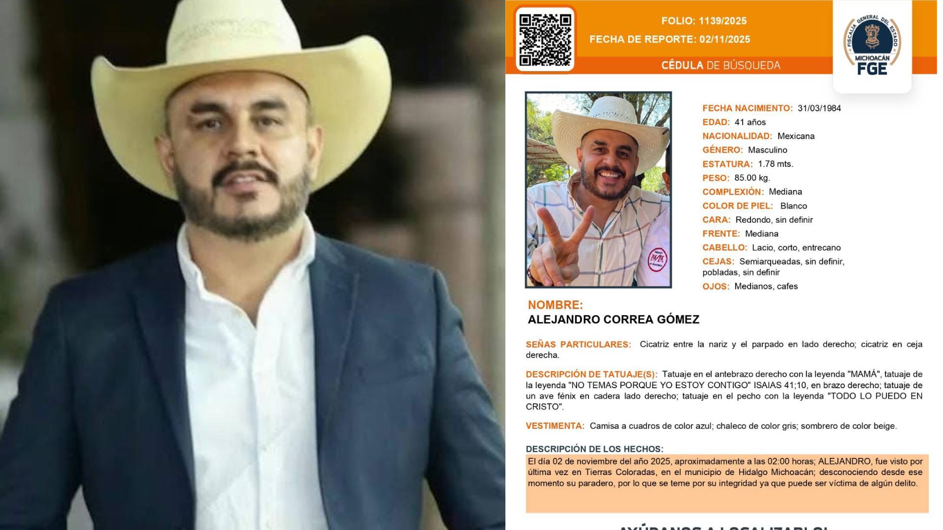 La ausencia del exedil se reportó el mismo día en que fue atacado el presidente municipal Carlos Manzo en Uruapan durante festejos del Día de Muertos