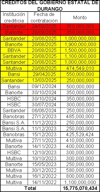 En este contexto no supimos que los pasados días 24 y 26 de septiembre los diputados del Congreso le aprobaron al narcogobernador priista Esteban Villegas las solicitudes de dos créditos bancarios más, en esta ocasión de 350 millones de pesos cada uno, para alcanzar la suma de 15 mil 775 millones de deuda autorizada por los diputados del Congreso desde el 14 de noviembre de 2022 a la fecha.