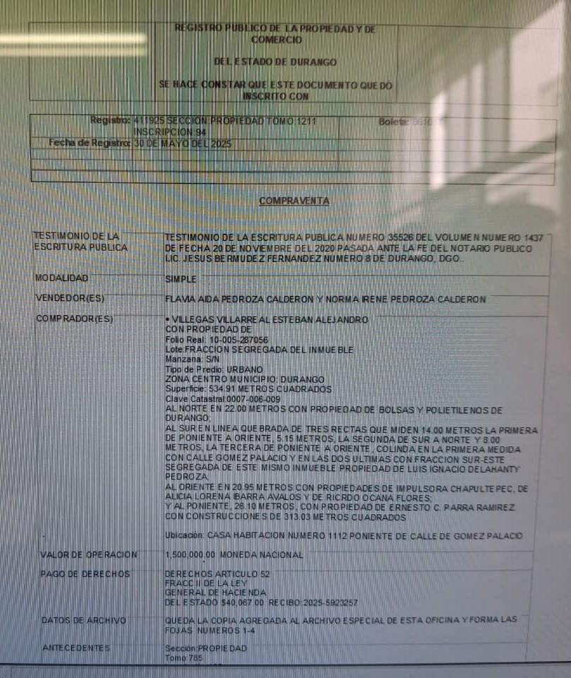 Pero esta deuda es para los gobernados, porque los gobernantes siguen su ritmo de vida despreocupada, organizando millonarias fiestas de quinceañeras y adquiriendo lujosas propiedades, como el mismo narcogobernador priista Esteban Villegas, quien este año acumuló una nueva propiedad a su patrimonio, con valor de un millón y medio de pesos, ubicada en la calle Gómez Palacio Núm. 1112 Poniente, en el Centro de la ciudad de Durango. La fecha de alta de este inmueble en el Registro Público de la Propiedad es del 30 de mayo de 2025.
