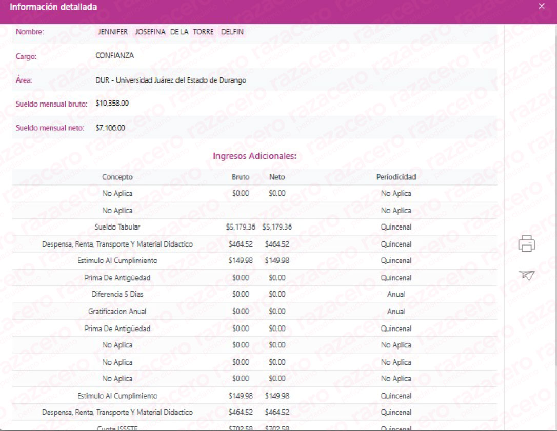 Otras como Jennifer de la Torre y Paloma Barraza están incrustadas en la nómina de la Universidad Juárez del Estado de Durango, esta última es la directora del Instituto de Investigaciones Jurídicas de la UJED, cargo que se ganó por difamar a periodistas críticos del narcogobernador priista Esteban Villegas.
